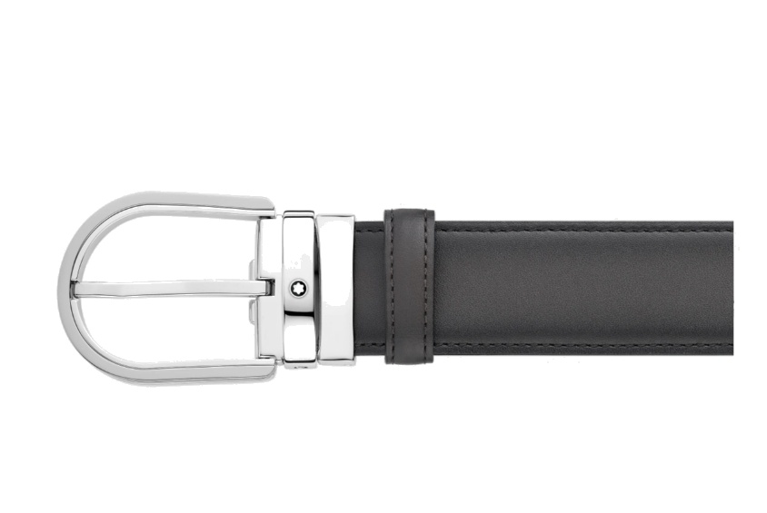 Кожаный ремень с пряжкой в форме подковы серого цвета 35 мм от магазина премиальных ручек Premium Pens в Тамбове.